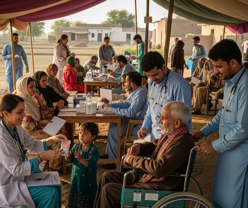• Free Medical Camps & Mobile Clinics: We bring medical services to remote and underserved areas, ensuring that basic health check-ups and treatments are available to everyone.